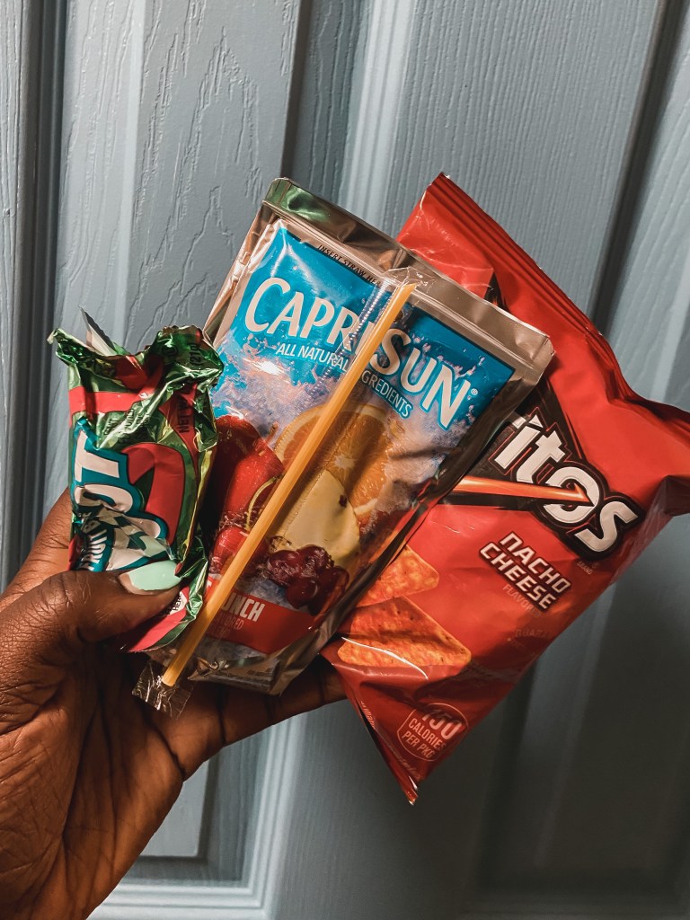 The biggest essentials are snacks and juice. I promise it never fails as soon as we step foot outside my son is asking for juice. I mean before I can even get his seatbelt on! So I always grab some juice boxes, a few waters, and Mio. Snacks can vary from chips, crackers, and fruit snacks just to tide them over.