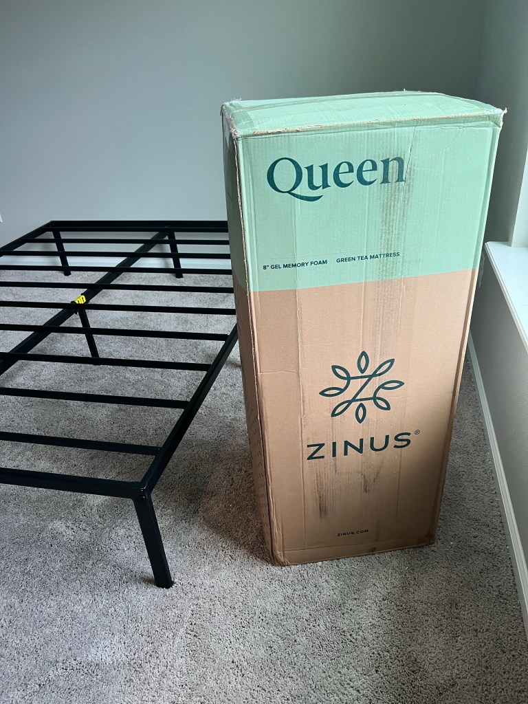 Essential was a bed and nightside table. Moving was already such a big undertaking financially I wanted something easy that wouldn't break my already broken piggy bank so I went to our favorite spot Amazon and found a bedframe and mattress I could live with. if you've never tried a Zinus mattress honestly, you're missing out and that's my honest opinion but the price just can't be beaten.