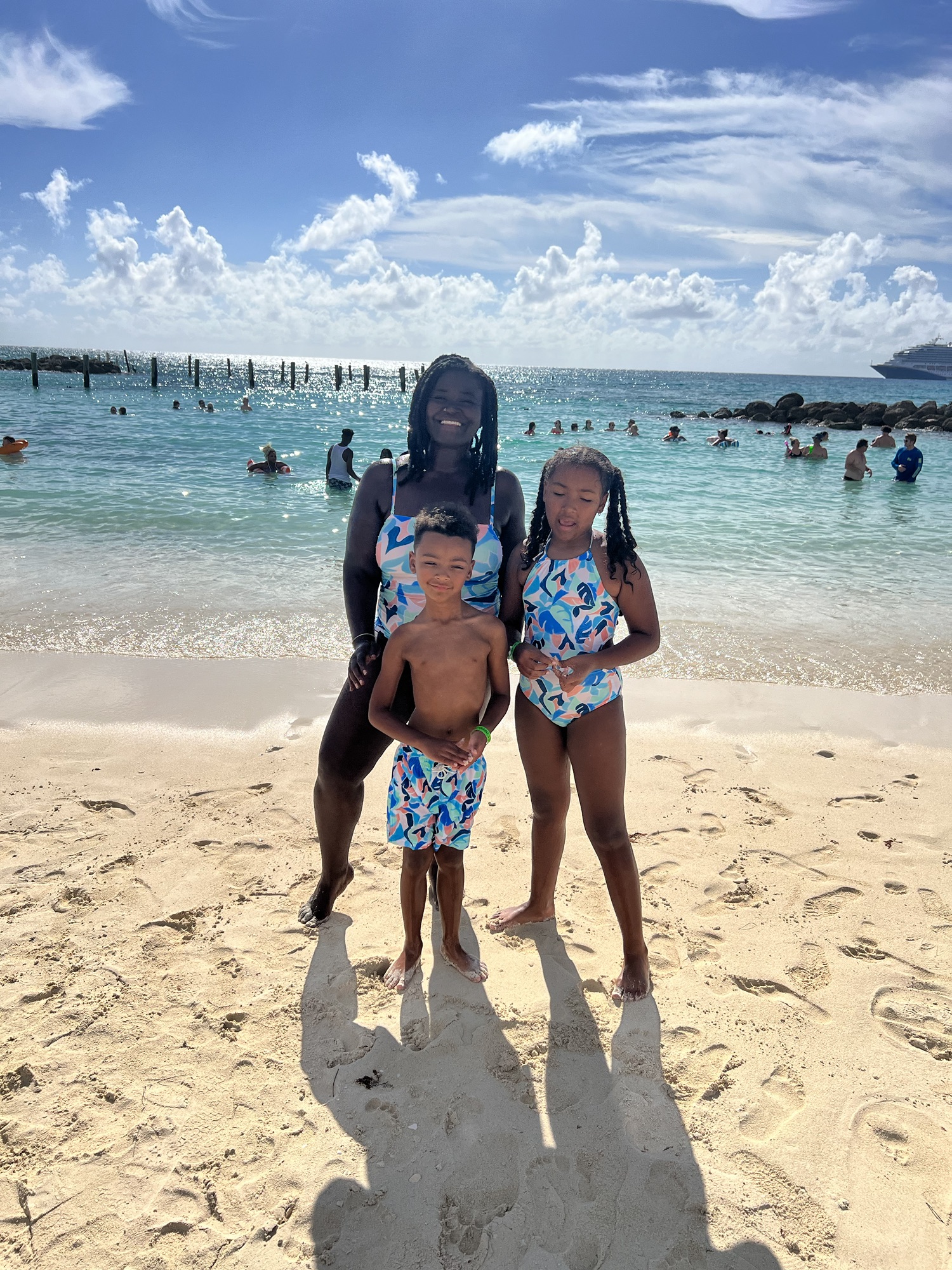 For matching swimwear, Old Navy is my go-to. They have the cutest matching bathing suits for the whole family. And if you have a child on the spectrum or have sensory issues yourself, these water shoes from Target are perfect for keeping that pesky sand out from between the toes.